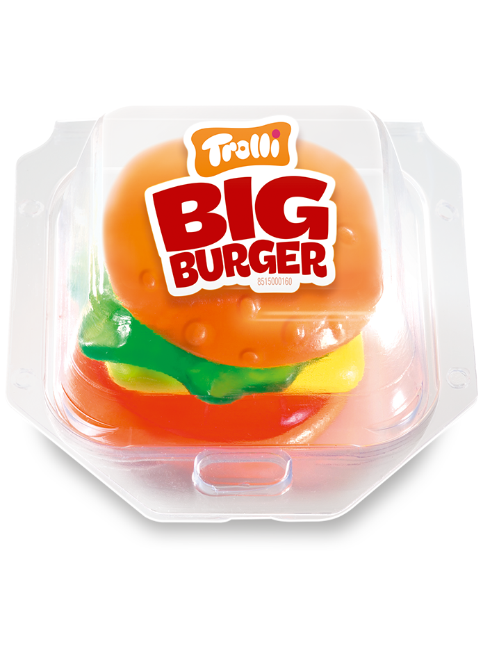 ¡Descubre la Big Burger de Trolli, la más famosa y deliciosa en su formato XXL! Sumérgete en una experiencia increíblemente dulce y divertida con cada mordisco. Esta deliciosa Burger está compuesta por cinco piezas irresistibles. Comienza con el pan superior de espuma naranja, seguido de una hoja de lechuga verde y refrescante. A continuación, encontrarás una rebanada de queso amarillo que te derretirá de placer. La cuarta pieza es una deliciosa rebanada de carne con sabor a fruta, ¡tan realista que te sorprenderá! Por último, disfruta del pan inferior de espuma naranja. Estas hamburguesas de golosinas están envasadas individualmente para preservar su ternura, asegurando que cada bocado sea tan fresco como el primero.