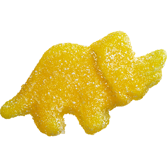 Es uno de los miembros más salvajes de nuestra familia: el Dino Rex. Con su sorprendente textura y su sabor ácido y afrutado, los dinosaurios de golosina son más populares que nunca. Y son 100% veganos. En los sabores: fresa-frambuesa, limequat-lima, limón, naranja, frambuesa.