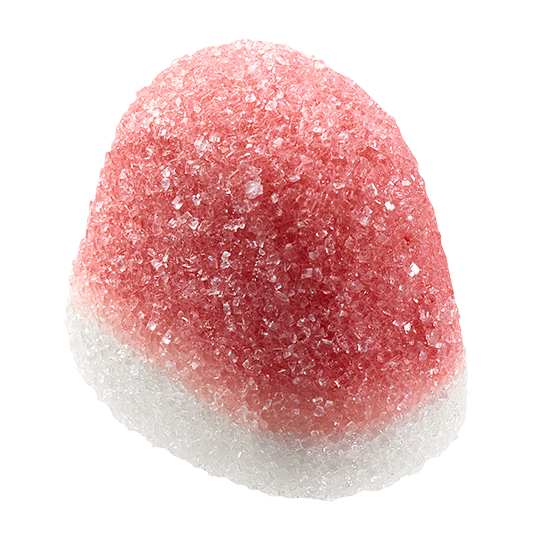 Ingredientes: jarabe de glucosa; azúcar; gelatina; acidulantes: ácido cítrico, ácido láctico; jugo de fresa a partir de jugo concentrado de fresa; agente gelificante: pectina; aromas; color: carmín real.