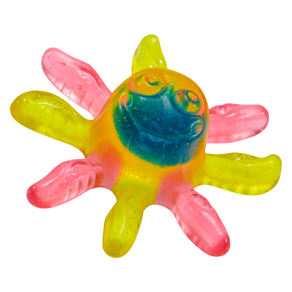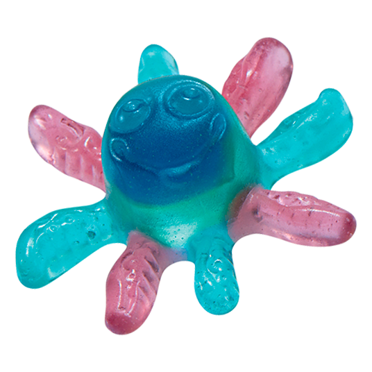 La familia de los Octopus Trolli ya tiene nuevo integrante: ¡Octopus Blue! El delicioso relleno líquido azul es pintalenguas, lo que asegura la curiosidad de los más jóvenes y diversión para todas las edades. Contiene diferentes sabores afrutados que harán imposible decidirse por un favorito. Patita a patita o de un bocado, ¡prepárate para una explosión azul!