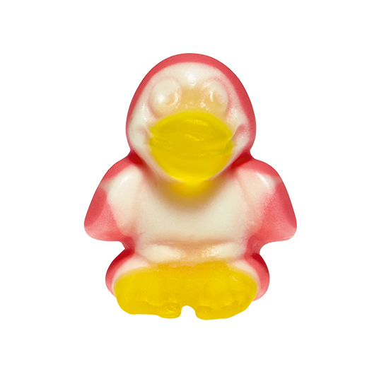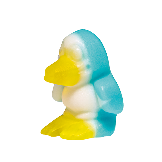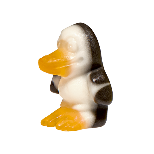 Los divertidos pingüinos de colores se pasean hacia los afrutados sabores de la frambuesa, fresa, grosella y frutos rojos. A los animales de manada no les gusta estar solos y prefieren comer en grupo. Y lo mejor es que: ¡los Trolli Pingummis se quedan de pie por sí mismos!