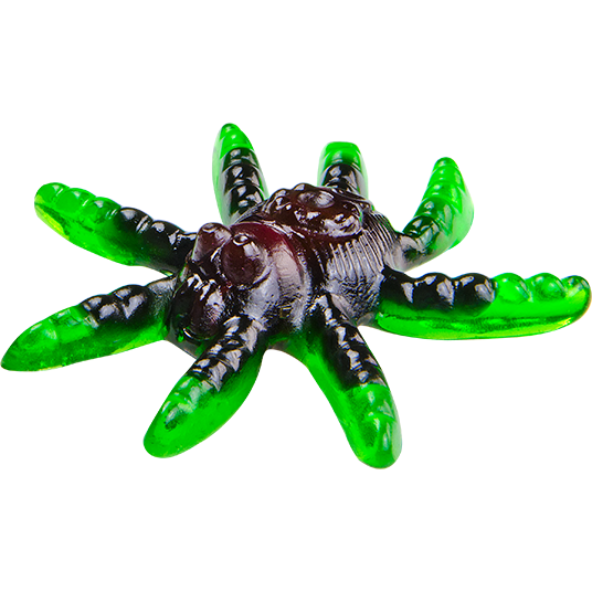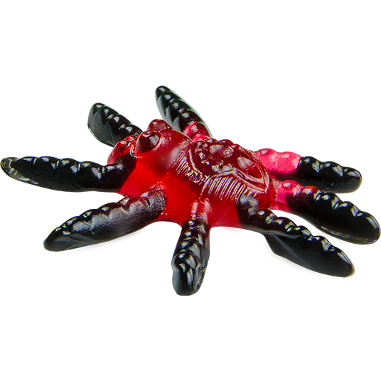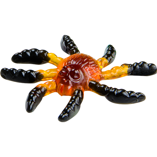 Estás en tu habitación, durmiendo, suena un ruido de plástico, algo se abre; de repente te va subiendo por las piernas. Notas sus patitas sobre tu tripa, te sube por el pecho, se va directamente a tu boca. ¡¡Es una Trolli Tarántula!! ¡Cómetela! ¡No son peligrosas y están buenísimas, con sus tres sabores diferentes! ¡Acábate la bolsa si no quieres que te suban más!